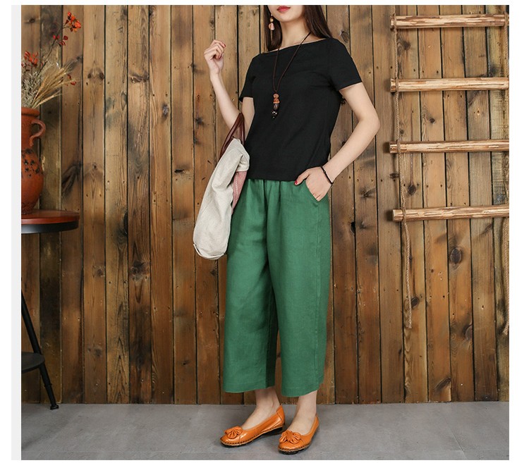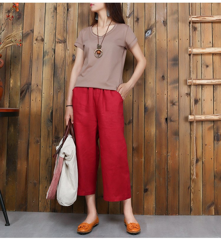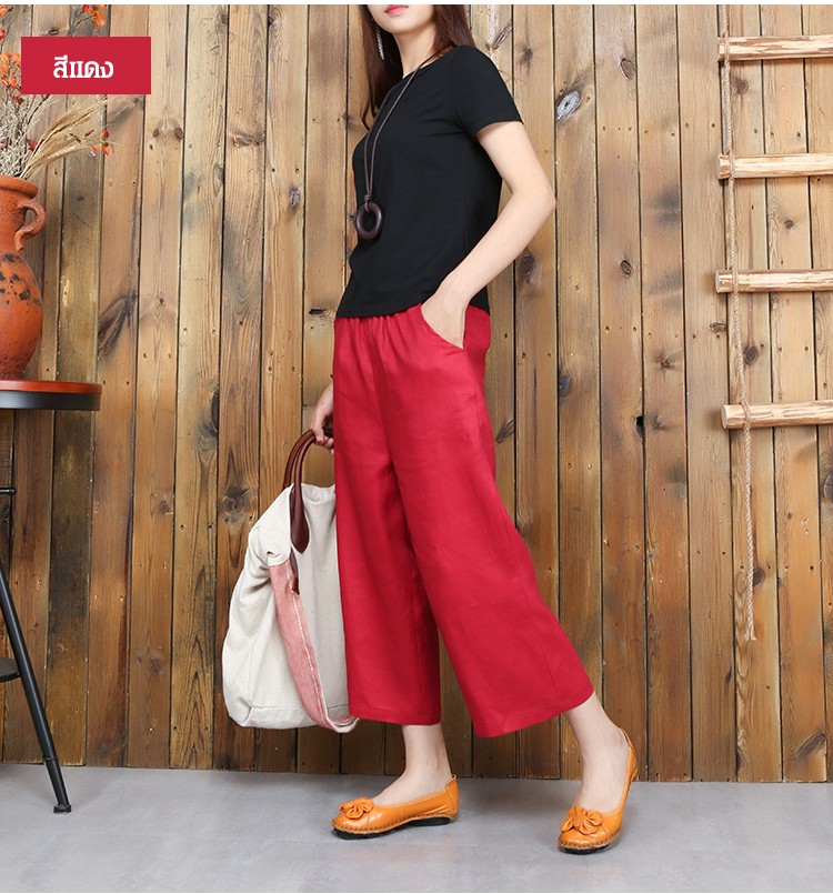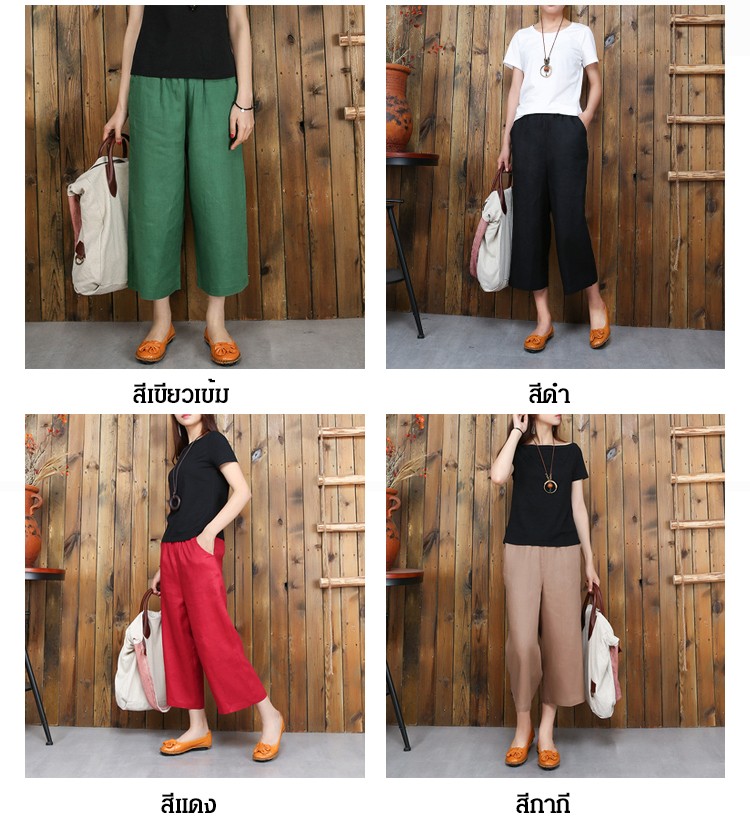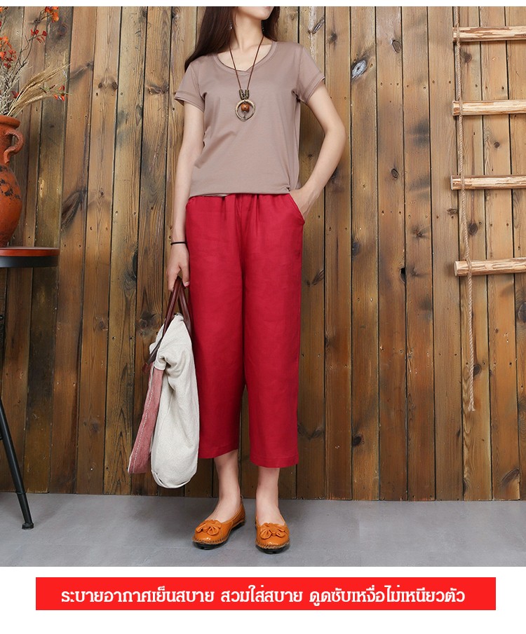 กางเกงผ้าลินินทรงทรงหลวมดูผอมสำหรับผู้หญิง