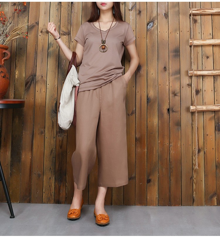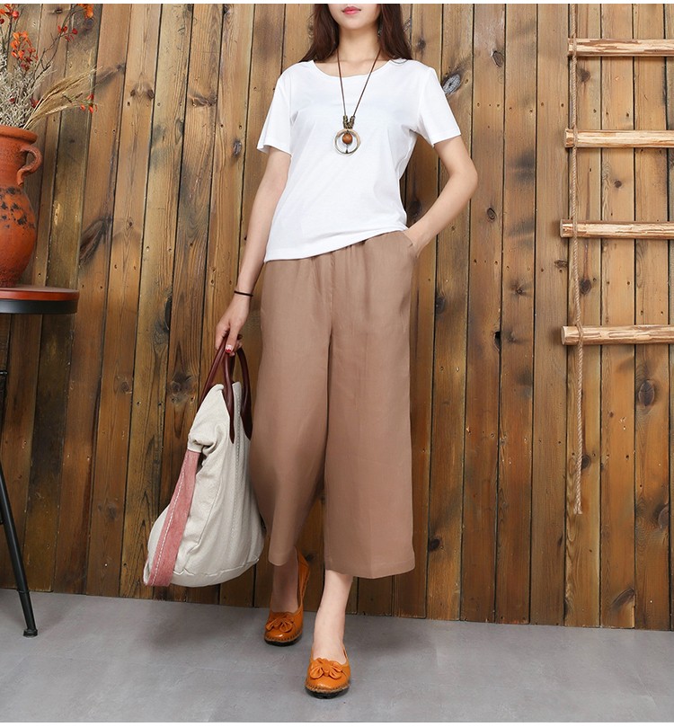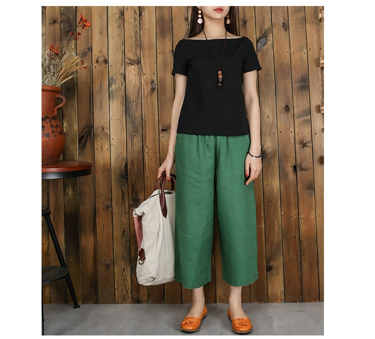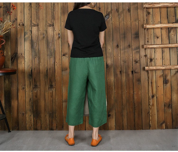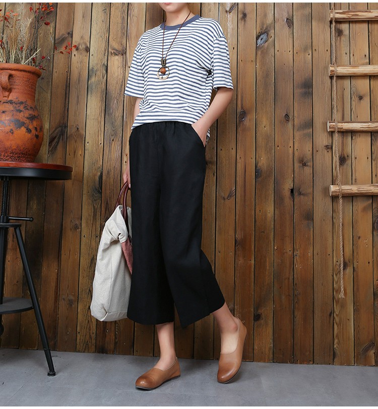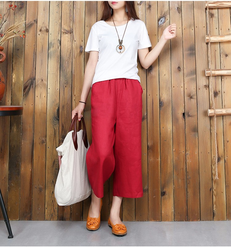 กางเกงผ้าลินินทรงทรงหลวมดูผอมสำหรับผู้หญิง