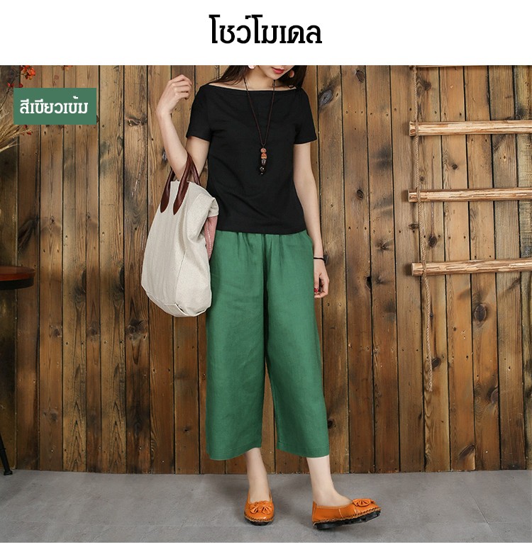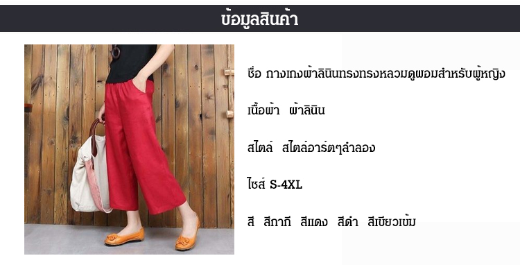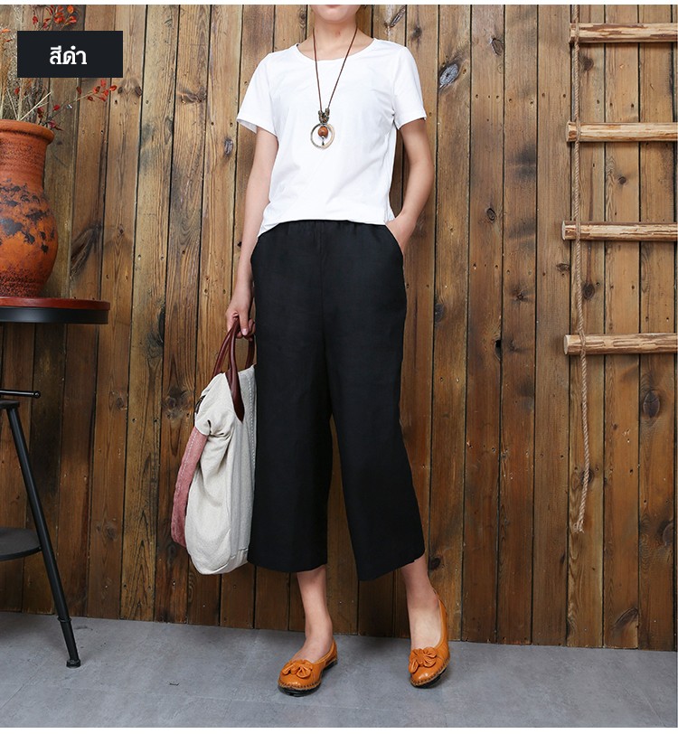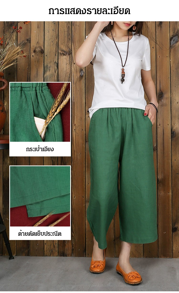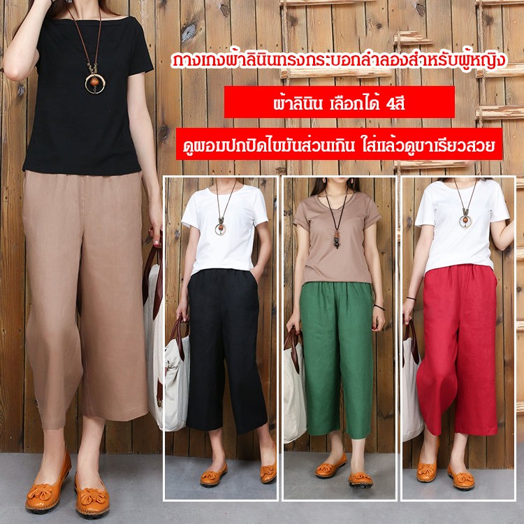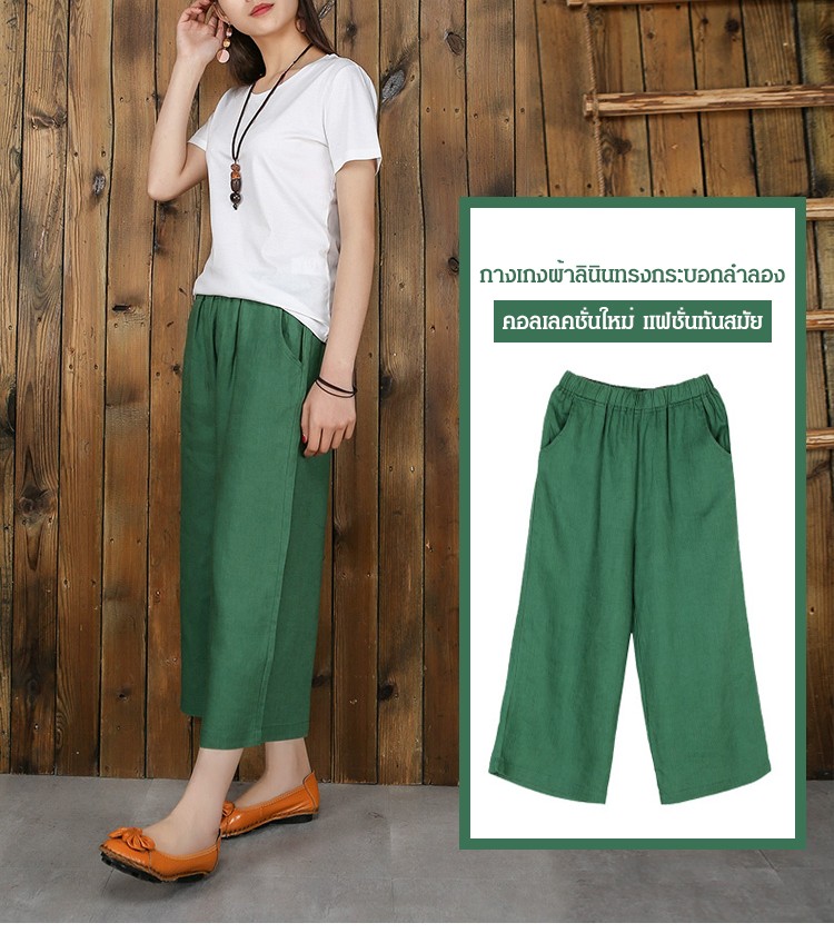 กางเกงผ้าลินินทรงทรงหลวมดูผอมสำหรับผู้หญิง สไตล์ขากระบอกคลาสสิค ผ้าลินินที่เหมาะกับผิว เอวยางยืด สวมใส่สบายมาก