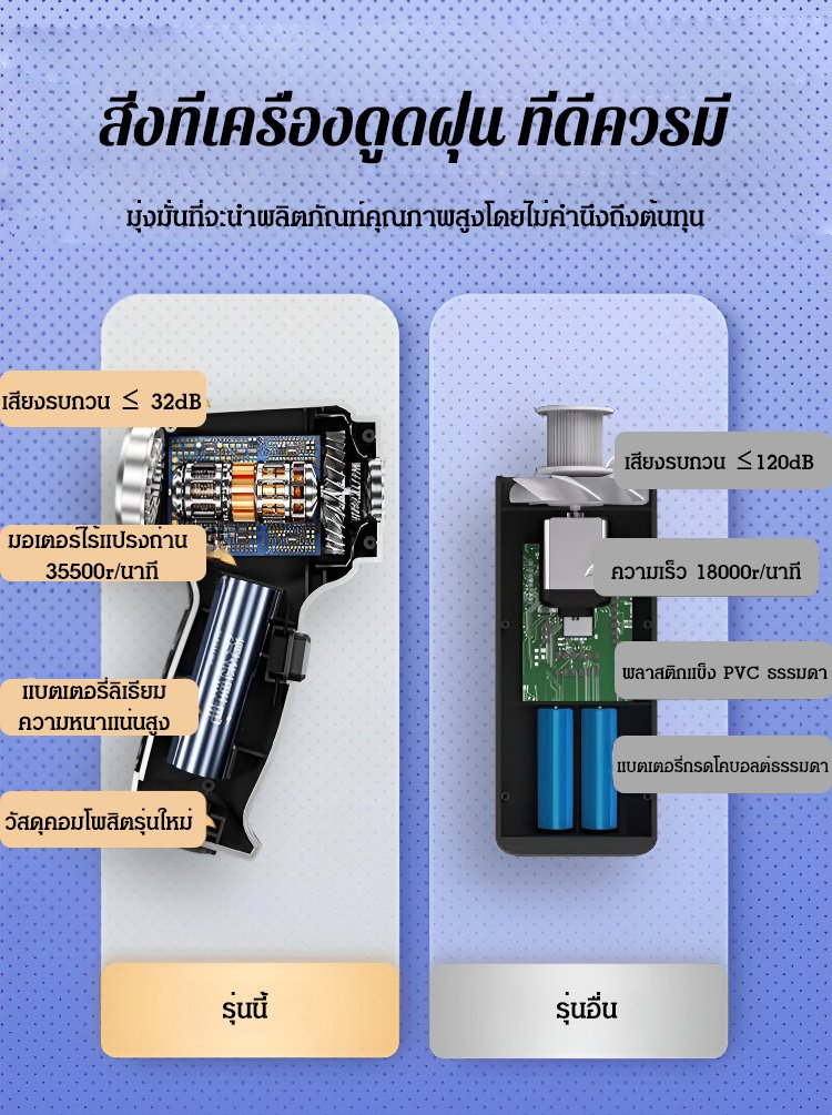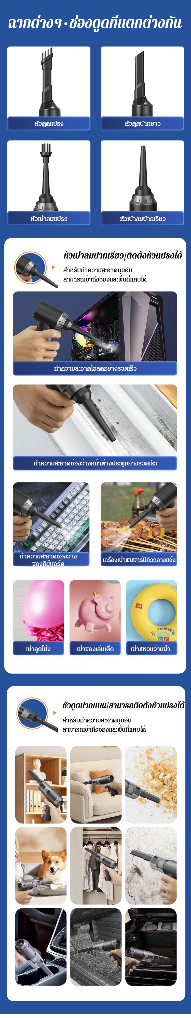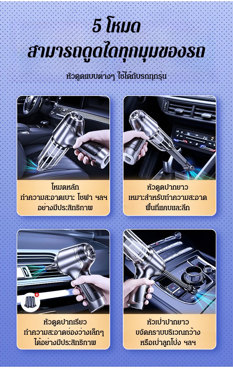 เครื่องดูดฝุ่นในรถยนต์แบบมือถือไร้สาย 3 อิน 1